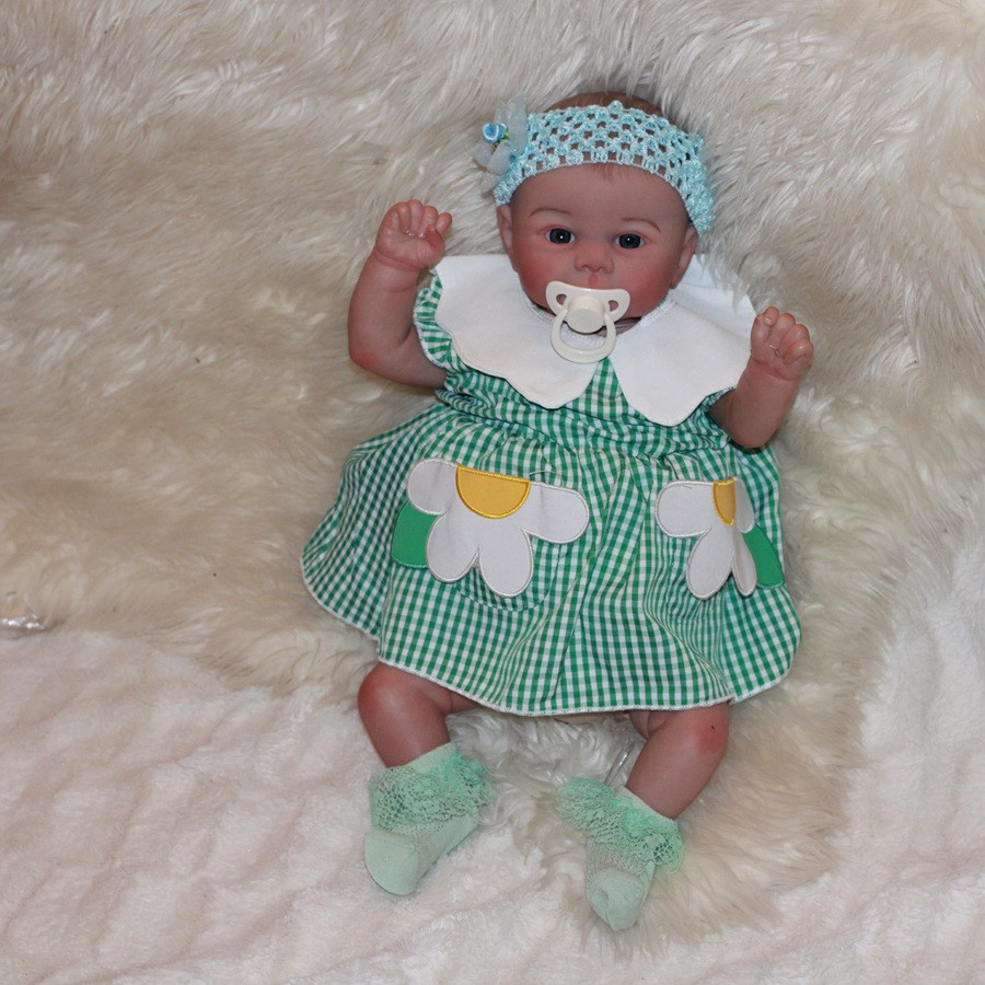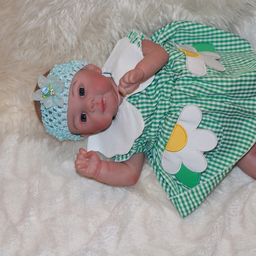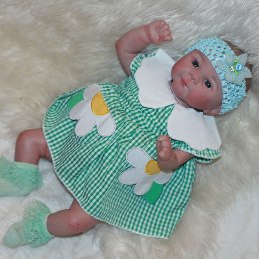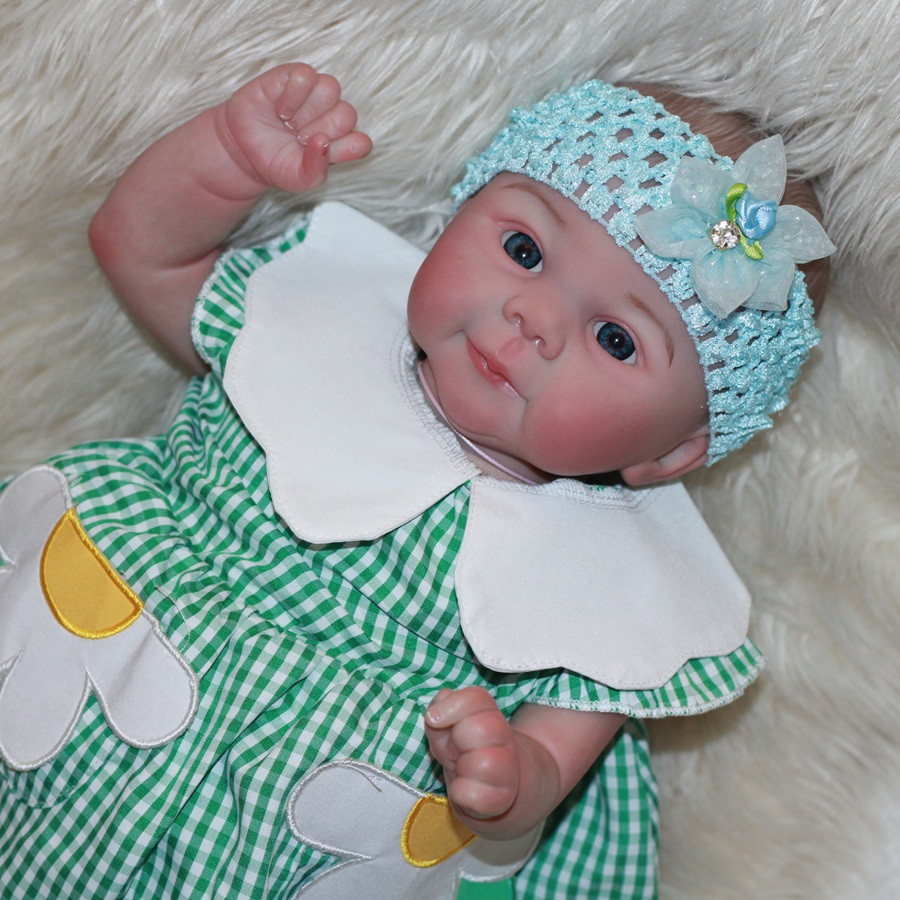 Hezká holčička, měří 48 cm,  Tělo má měkké-látkové vyplněné granuláty, vláknem, nebo jinou výplní, končetiny má z vinylu. Panenka má jemne malované vlásky.  Přijde i s dudlíkem. Julie hlasite pláče.